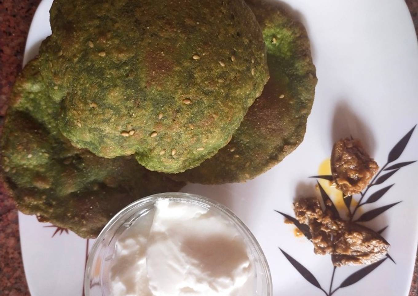 #GA-4#, Week 9.It is very nutritious puri.palak is good source of iron n mung dal is source of protein.