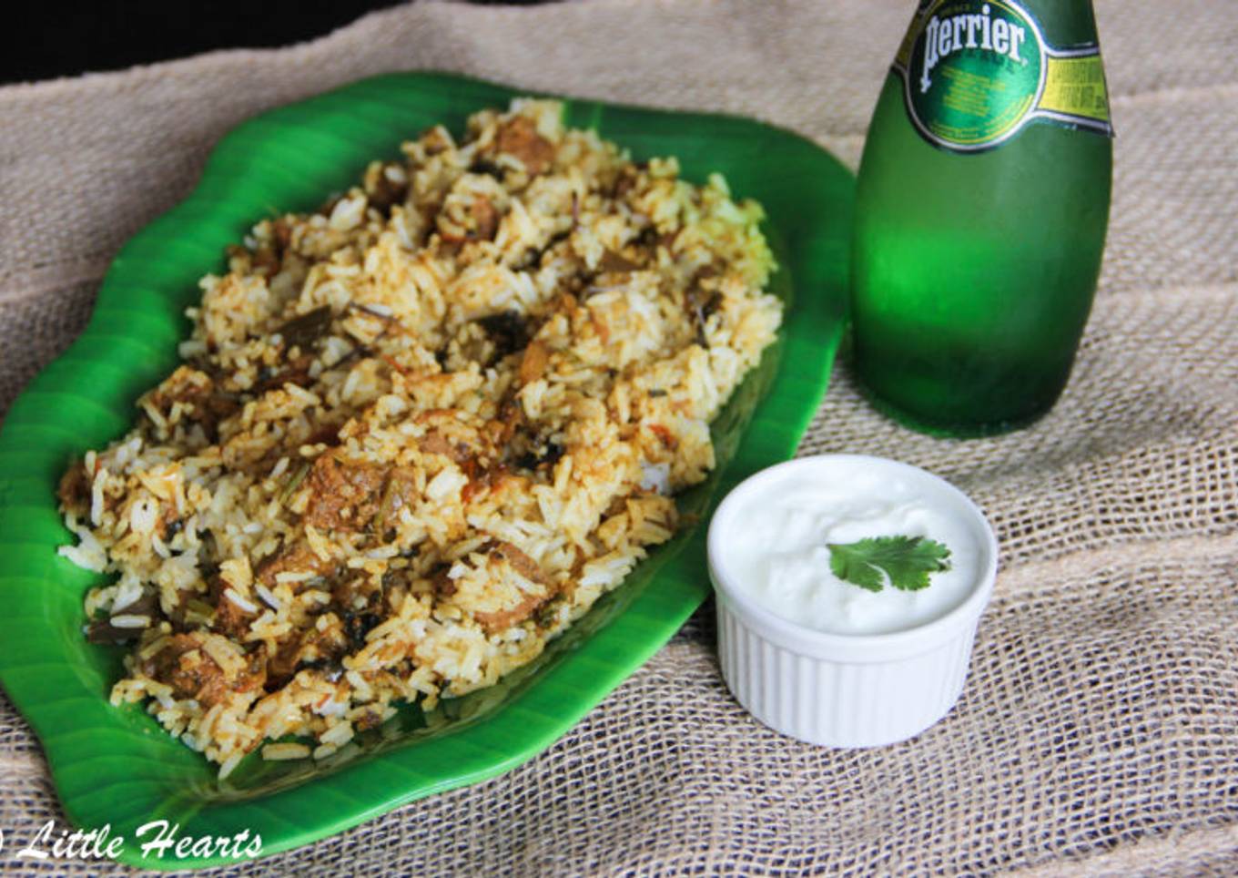 - Close the biryani pot with a tight fitting heat resistant lid, and seal the edges of the lid with the prepared dough without the slightest opening. Place the biryani pot on top of a tawa and cook on low heat for 20 mins until steam comes out from the dough seal. Switch off the flame after 20 mins. Leave it on the tawa unopened for 10 more mins. Break open the dum seal. Using a long spoon, gently mix the rice and mutton masala. Serve hot with raita and pappadam.